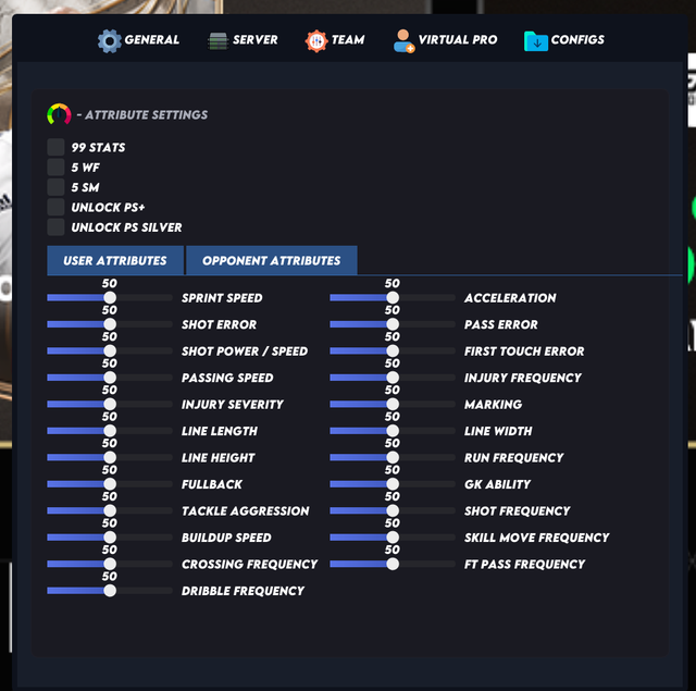 隐藏属性99:为所有球员/机器人赋予99能力隐藏属性。